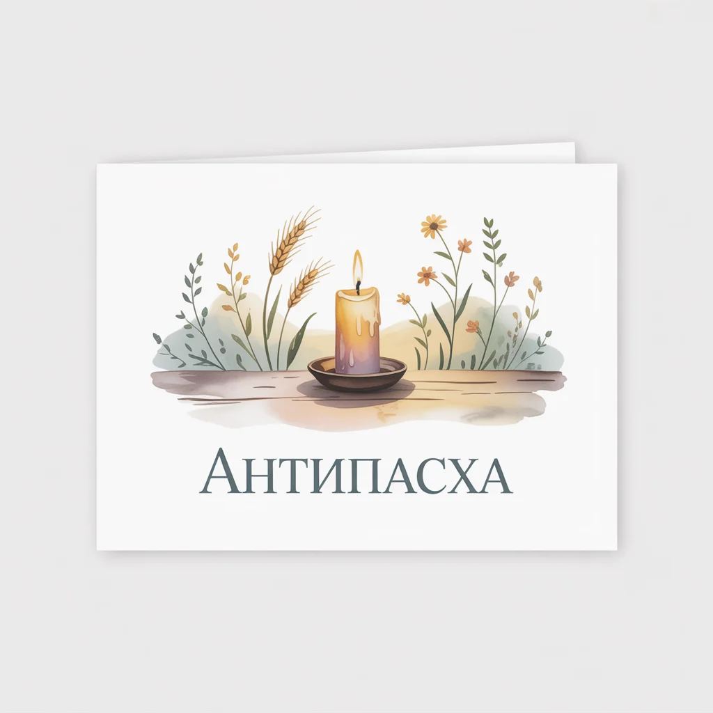 Открытки к Антипасхе оформляют сдержанно, но светло: свечи, иконы, белые цветы, лики апостолов. Часто на них изображают Христа, простирающего руки к апостолу Фоме. Их дарят тем, с кем хочется поделиться не только праздничным настроением, но и тёплой верой. В надписях звучит спокойствие и уверенность: «Пусть воскресший Христос будет рядом не только в праздник», «С Фоминым воскресеньем — веры, мира и тишины в сердце». Такие открытки не громкие, но глубокие. Они создают особое настроение — спокойное, но наполненное светом и добротой.