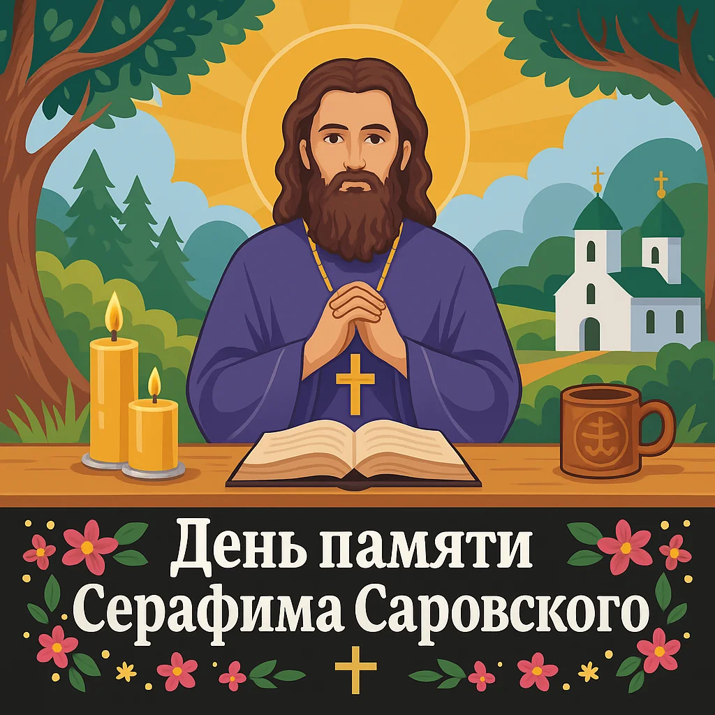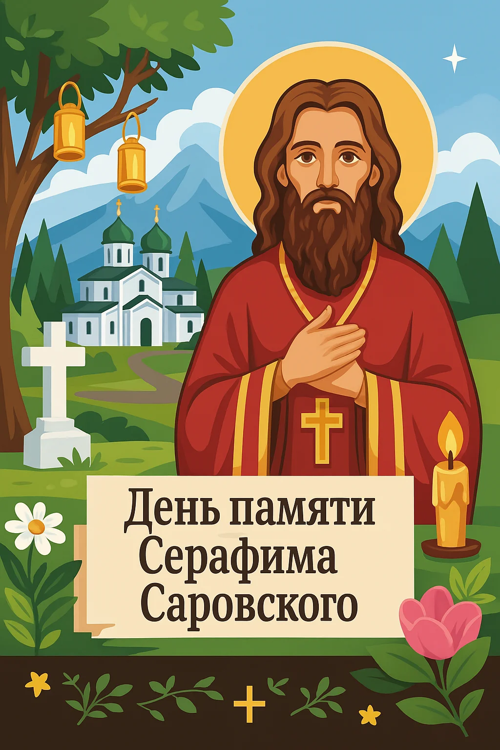 В поздравлениях и пожеланиях в День памяти Серафима Саровского звучат слова мира, веры и утешения: «Пусть по молитвам святого в твоей жизни будет свет и покой», «Смирения, радости в сердце и Божией благодати», «Да поможет тебе святой Серафим в пути и трудах». Такие слова особенно уместны в открытке и звучат как тихая молитва.