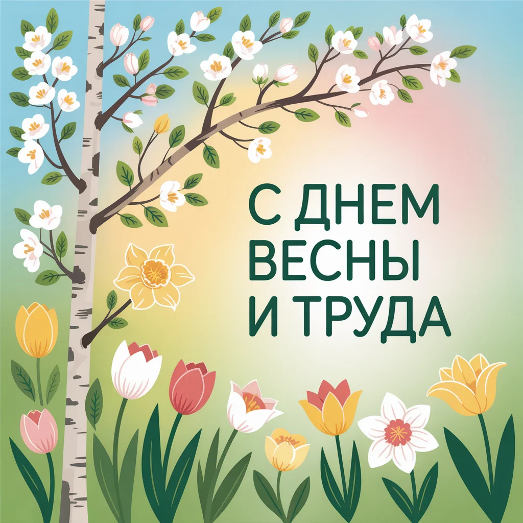 Открытки к этому дню бывают простые, но тёплые. Веточки цветущих деревьев, солнце сквозь листву, мирная улица в полдень. Их дарят коллегам, друзьям, родным — с намёком: пусть в твоей жизни будет и труд, и весна. Надписи часто звучат так: «Пусть в делах будет толк, а в днях — свет», «С праздником тепла и простых радостей». Это не про форму, а про атмосферу. Открытка — как улыбка без слов, как кружка чая в тени дерева, как «отдохни, ты это заслужил».