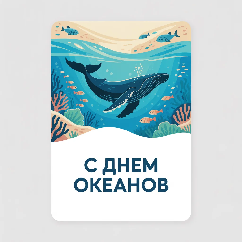 Открытки к этому дню всегда с оттенком синего — глубокие воды, кораллы, дельфины, корабли. На них пишут: «Береги океан — он даёт жизнь» или «Пусть моря будут чистыми и полными жизни». Их дарят друзьям-дайверам, путешественникам, экологам, отправляют в соцсетях как напоминание о ценности морей. Даже простое изображение волны с тёплыми словами способно вдохновить на заботу о природе.
