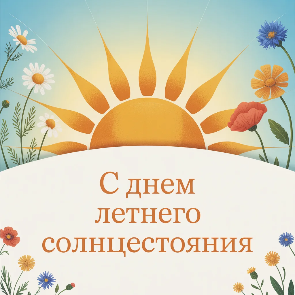 Открытки к этому дню тёплые, золотистые, с изображениями солнца, поля, цветочных венков. Иногда добавляют надписи вроде «Пусть света хватит на весь год» или «Солнце внутри и снаружи». Их отправляют друзьям, родным, тем, кто любит природу и необычные даты. Такая открытка — как маленький кусочек лета, который можно подарить, даже если за окном совсем не жарко.