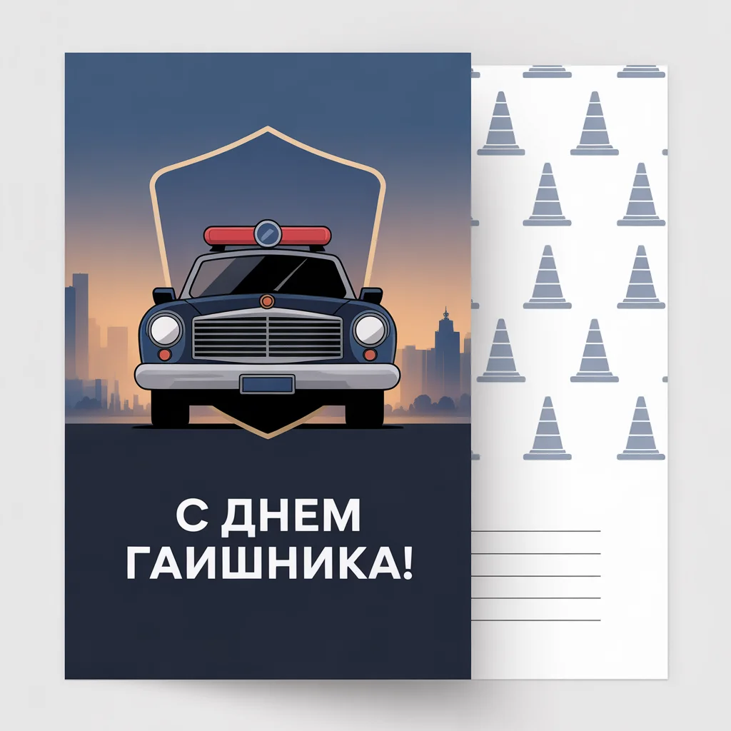 Открытки к этому празднику часто с изображением патрульных машин, жезлов, дорожных знаков или дружелюбных инспекторов. Надписи могут быть тёплыми и шутливыми: «С Днём ГИБДД! Ровных дорог и спокойных смен» или «Пусть каждый рейс будет безопасным». Их дарят действующим сотрудникам, ветеранам службы, а также друзьям-водителям как знак уважения к работе инспекторов.