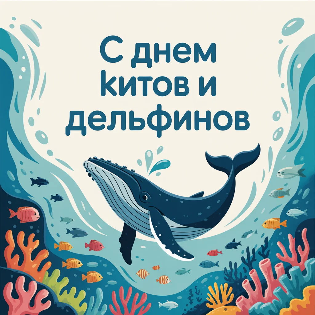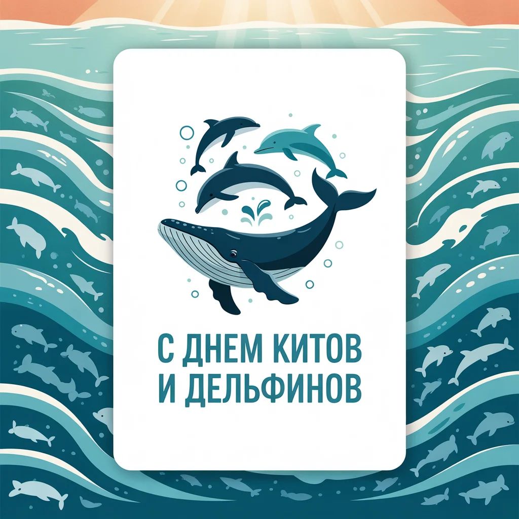Открытки к этому дню оформляют с изображениями морских просторов, улыбающихся дельфинов и величественных китов. На них пишут: «С Днём китов и дельфинов! Берегите океан» или «Пусть море будет домом для всех его обитателей». Их дарят друзьям, детям, экологам и просто любителям моря, чтобы поделиться заботой о планете.
