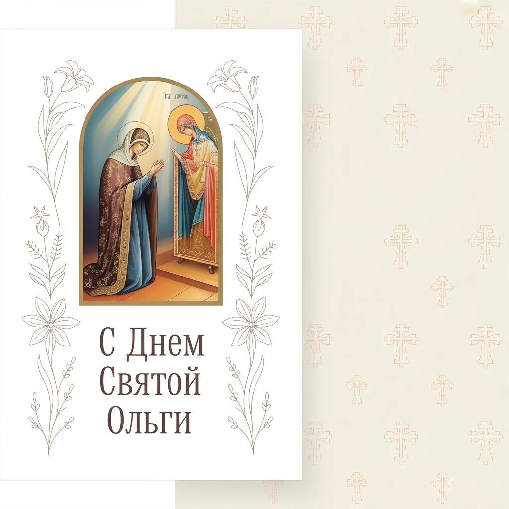 Открытки к этому дню часто с изображениями иконы, цветов, светлых пейзажей. На них пишут: «С Днём святой Ольги! Мира и благодати» или «Пусть святая хранит и направляет». Их дарят именинницам, родственникам и друзьям, чтобы подчеркнуть значимость этого дня и пожелать духовного тепла.