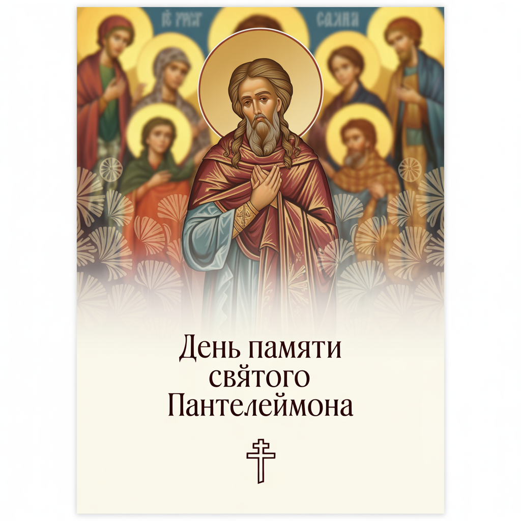 Открытки к этому дню часто изображают святого с крестом и коробочкой для мази в руках, а также символы веры — купола храмов, свечи, полевые цветы. В электронных вариантах можно встретить слова «Мира и здоровья вашему дому» или «Да хранит святой Пантелеймон». Их дарят родным, друзьям, врачам и тем, кто переживает болезнь, чтобы поддержать и вдохновить на выздоровление.