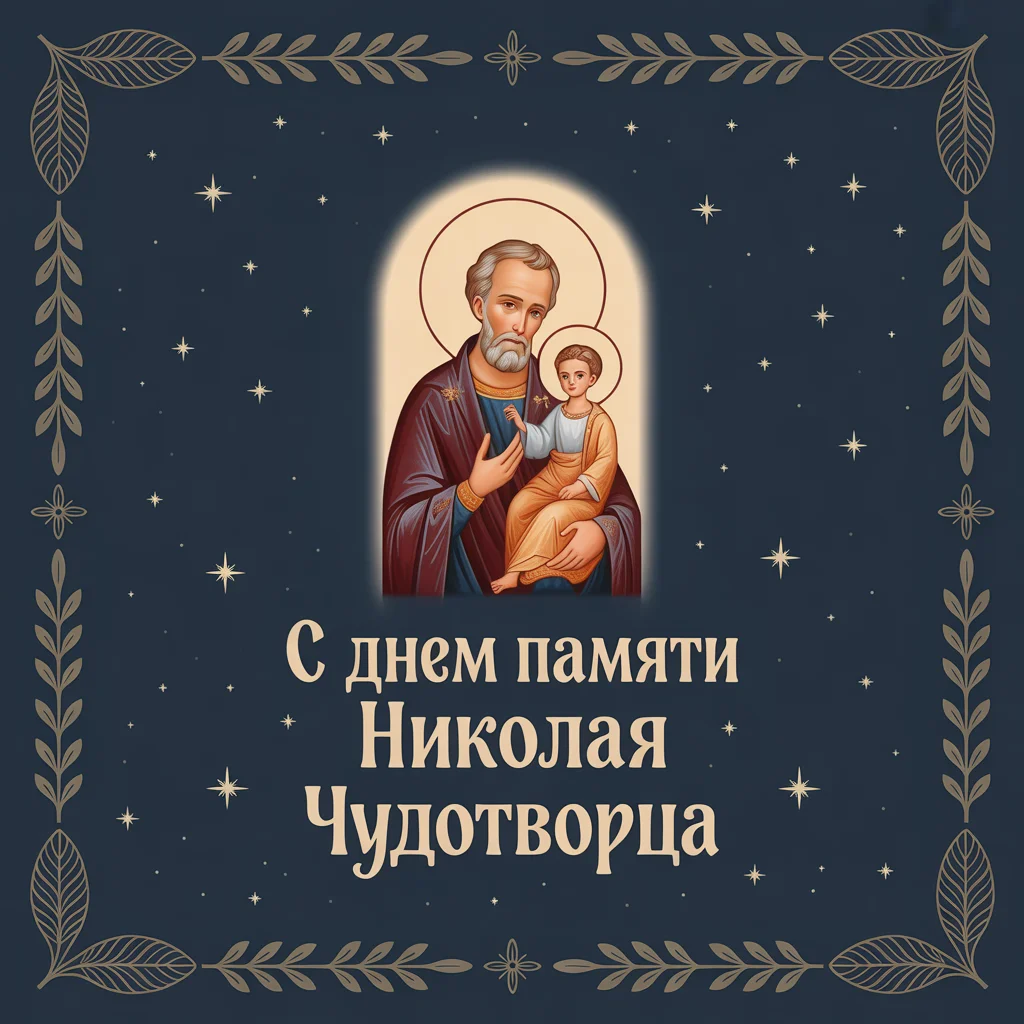 Открытки к этому дню часто выполнены в спокойных, благородных тонах, с изображением икон святителя, храмов или зимних пейзажей, если дата приходится на холодное время года. На них пишут: «С Днём памяти Николая Чудотворца! Мира и благословений» или «Пусть святитель хранит вас и ваших близких». Такие открытки дарят родным, друзьям и коллегам, чтобы напомнить о духовном смысле дня и передать тёплые, искренние пожелания.