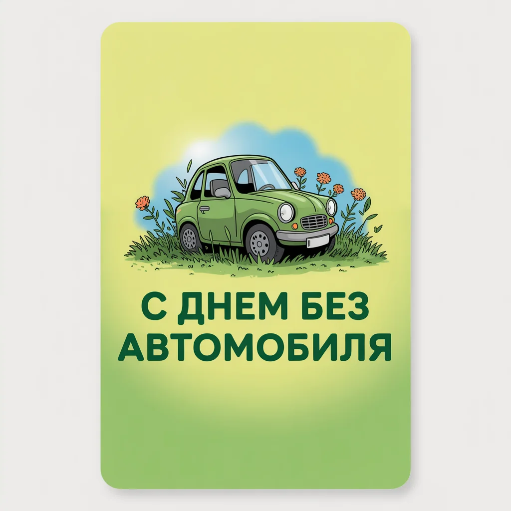 Открытки к этому празднику оформляют яркими, позитивными мотивами: велосипеды, зелёные улицы, улыбающиеся пешеходы, чистое голубое небо. Бумажные варианты могут содержать надписи вроде «Выбери движение без выхлопов» или «Сегодня идём пешком», электронные — анимацию катящихся велосипедов или шагающих человечков. Их дарят друзьям, коллегам и близким, которые поддерживают экологичный образ жизни. Такая открытка может стать лёгким и вдохновляющим напоминанием о том, что передвижение может быть и полезным, и приятным.