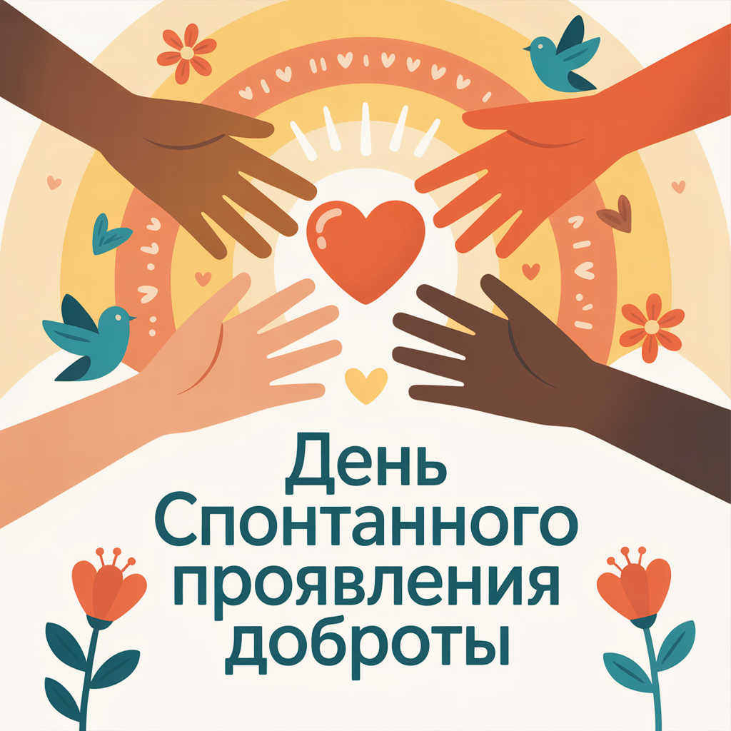 День спонтанного проявления доброты отмечается ежегодно 17 февраля. Это международный праздник, цель которого — напомнить о силе простых добрых поступков и вдохновить людей на бескорыстные действия. Он не привязан к религии, стране или культуре — доброта универсальна и понятна каждому. Идея праздника — делать добро здесь и сейчас, без повода и ожидания благодарности.