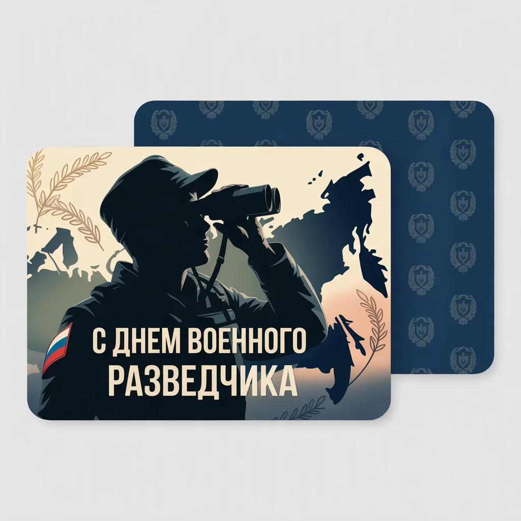 Открытки к этому празднику часто оформляют символикой войск: эмблемами разведки, силуэтами бойцов, изображениями карты и приборов наблюдения. Бумажные варианты могут содержать надписи вроде «С Днём военного разведчика!» или «Чести, силы и точных данных», электронные — анимацию разведывательного дрона, компаса или бинокля. Их дарят сослуживцам, ветеранам и тем, кто связан с этой службой.