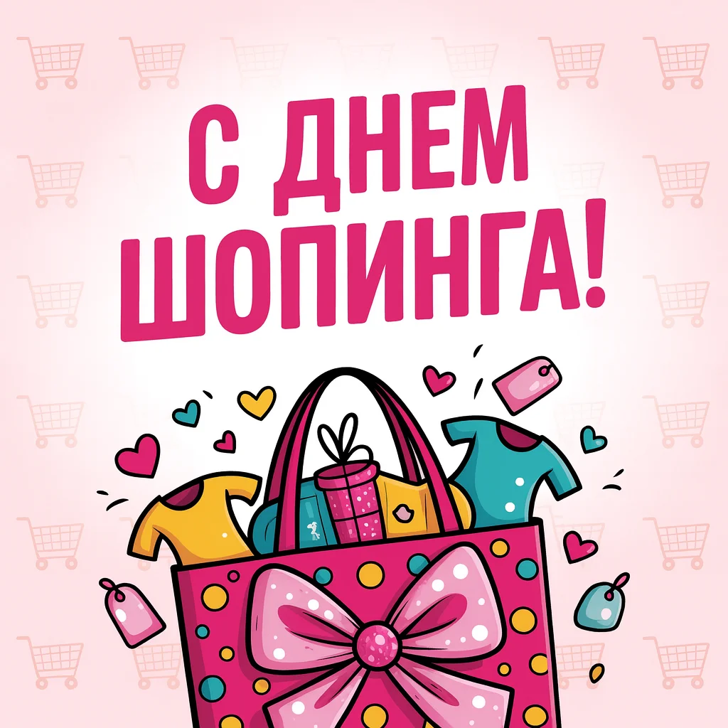 Открытки к этому дню часто яркие и игривые: пакеты с покупками, модные аксессуары, надписи вроде «Пусть твоя корзина будет полной радости» или «Шопинг — лучший фитнес». Электронные варианты можно отправить друзьям как приглашение на совместный поход в магазины. Такие открытки поднимают настроение, создают ощущение праздника и помогают разделить радость от удачных находок.