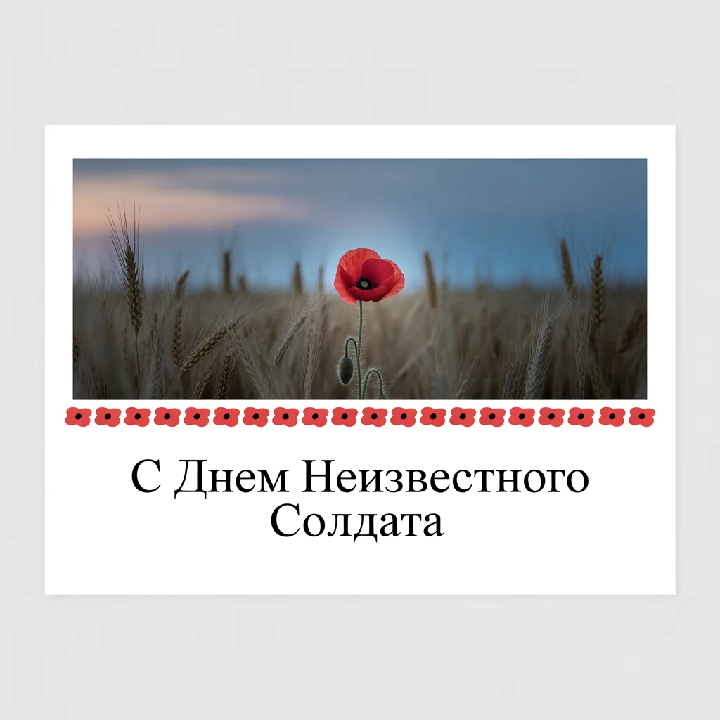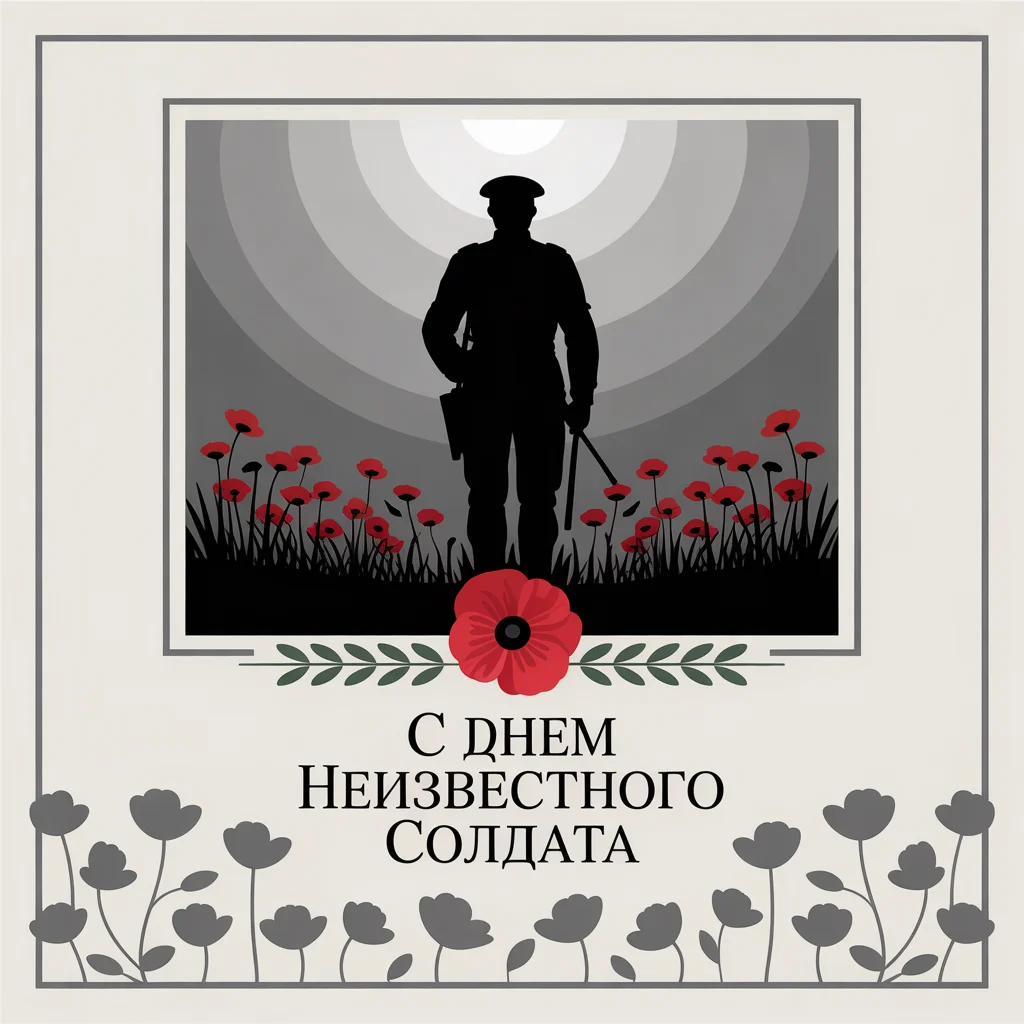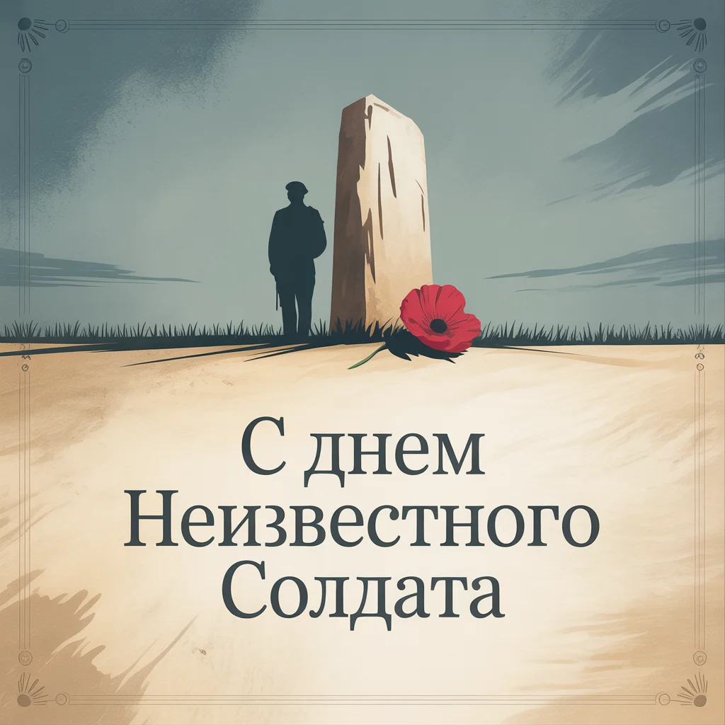 Открытки в этот день сдержанны и наполнены уважением: силуэты солдат, вечный огонь, алые гвоздики на фоне памятных плит. В электронных вариантах можно встретить надписи «Помним и чтим» или «Герои живут в нашей памяти». Их отправляют не ради формального поздравления, а как знак участия в общем почтении. Такая открытка способна передать глубокое чувство благодарности и уважения к тем, кто остался безымянным.