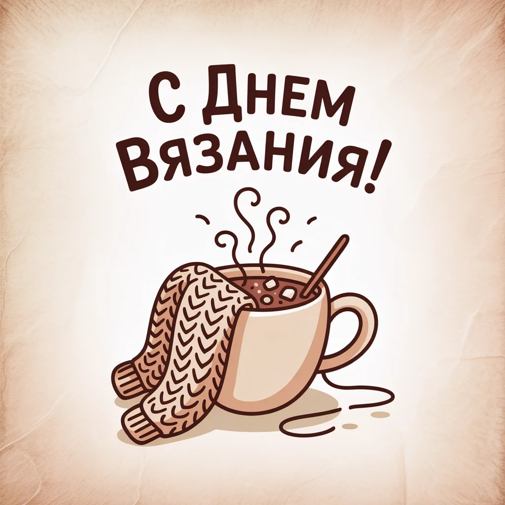 Открытки в этот день часто украшают изображениями разноцветных клубков, спиц, крючков и уютных вязаных вещей. В электронных вариантах встречаются надписи «Пусть петли ложатся ровно» или «Вяжи мечты так же легко, как шарфы». Их дарят друзьям по увлечению, рукодельницам, преподавателям мастер-классов, чтобы вдохновить на новые проекты. Такая открытка сама по себе может стать маленьким источником тепла.