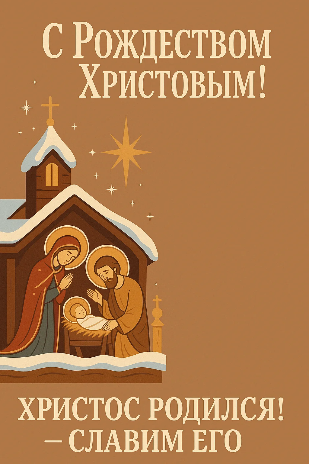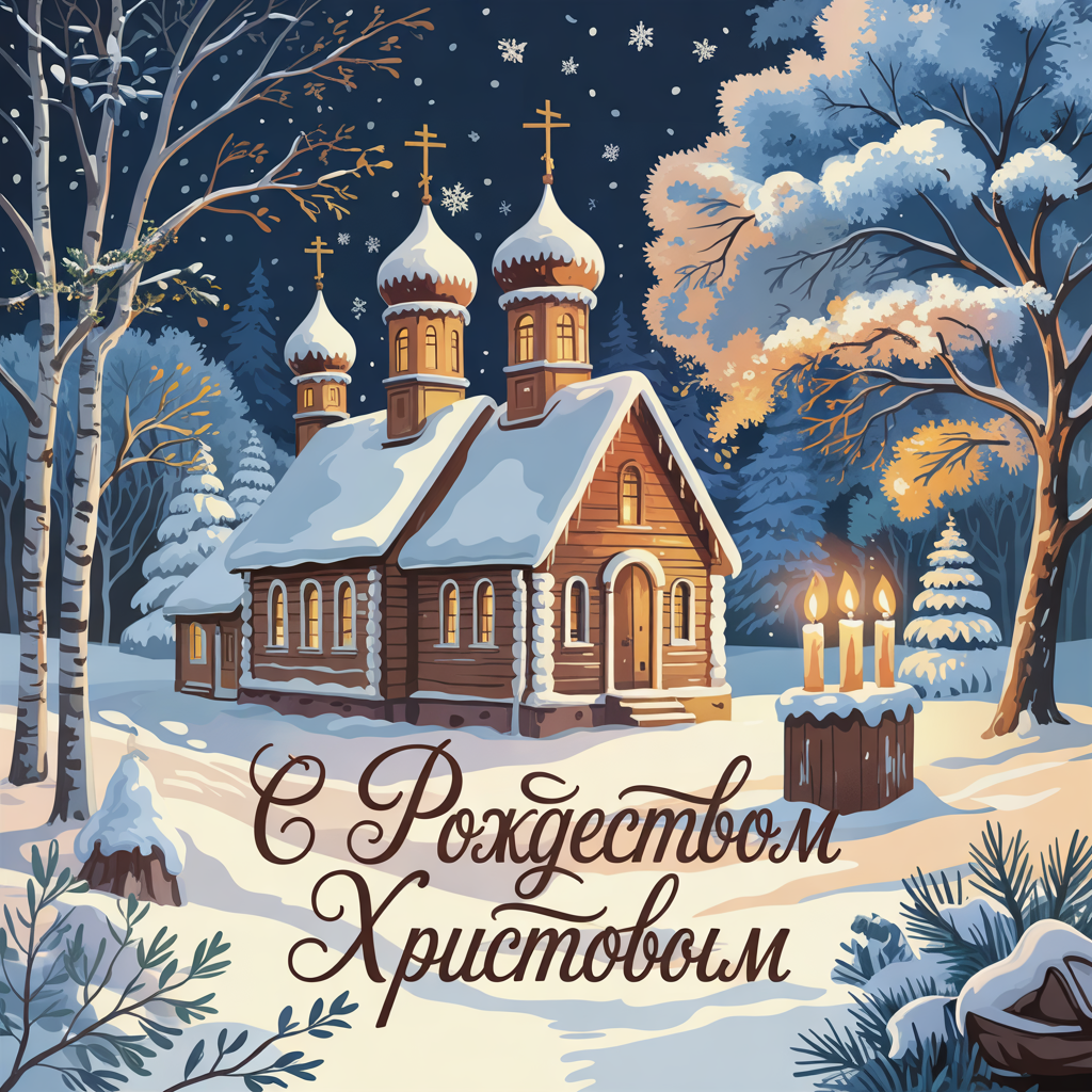 Рождество — это время добрых дел, чистых мыслей и душевного света. Пусть каждая открытка, отправленная вами в этот день, станет маленьким чудом, которое подарит радость и веру вашим близким.