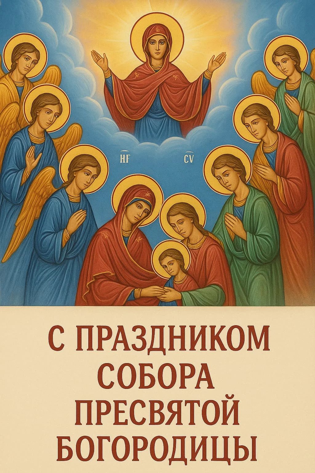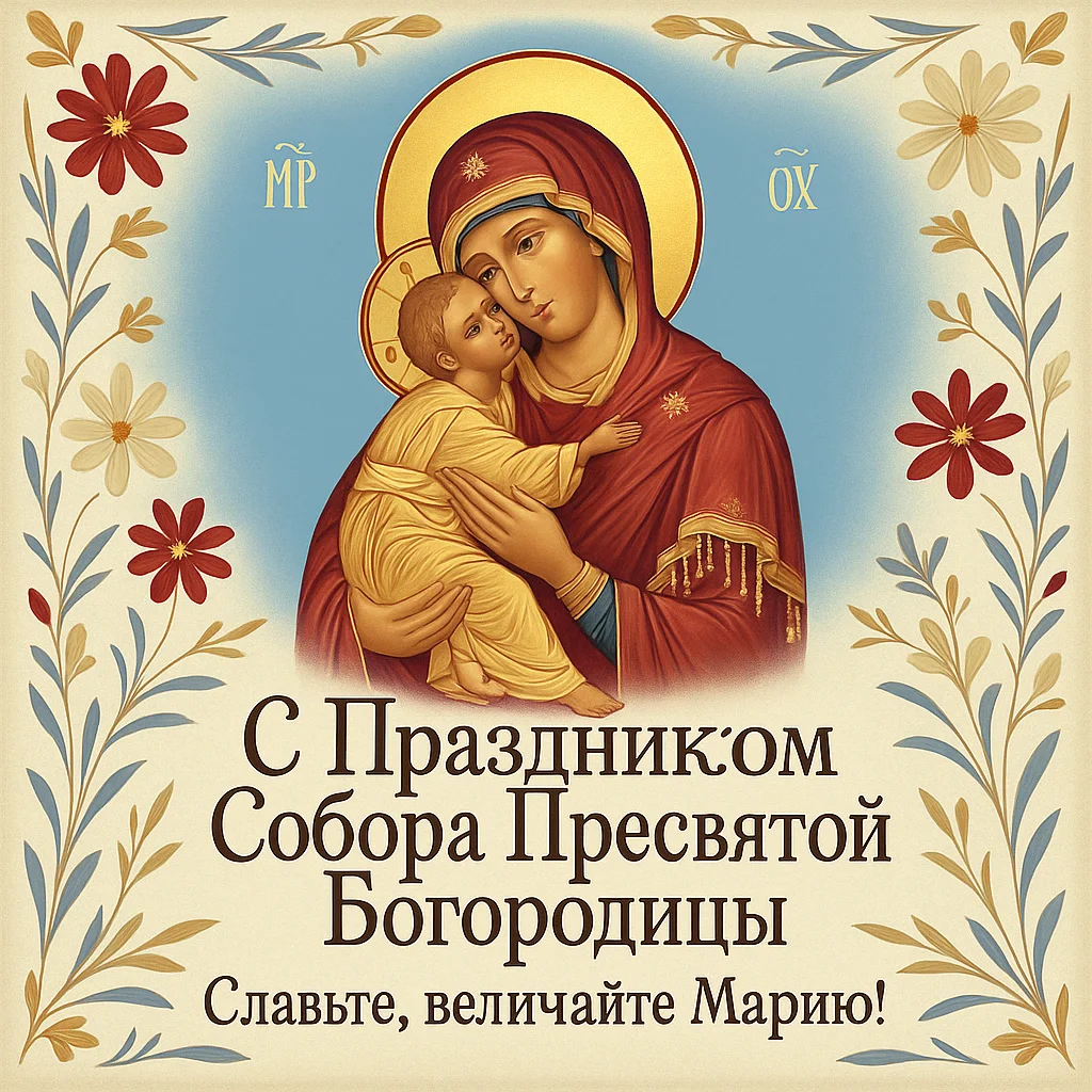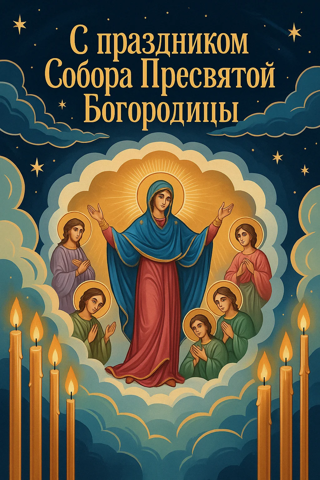 На нашем сайте вы можете найти открытки, созданные специально для праздника Собора Пресвятой Богородицы. Их можно отправить с пожеланиями мира, веры, благополучия и покровительства Богородицы. Это искренний и красивый способ поздравить близких в этот светлый день.