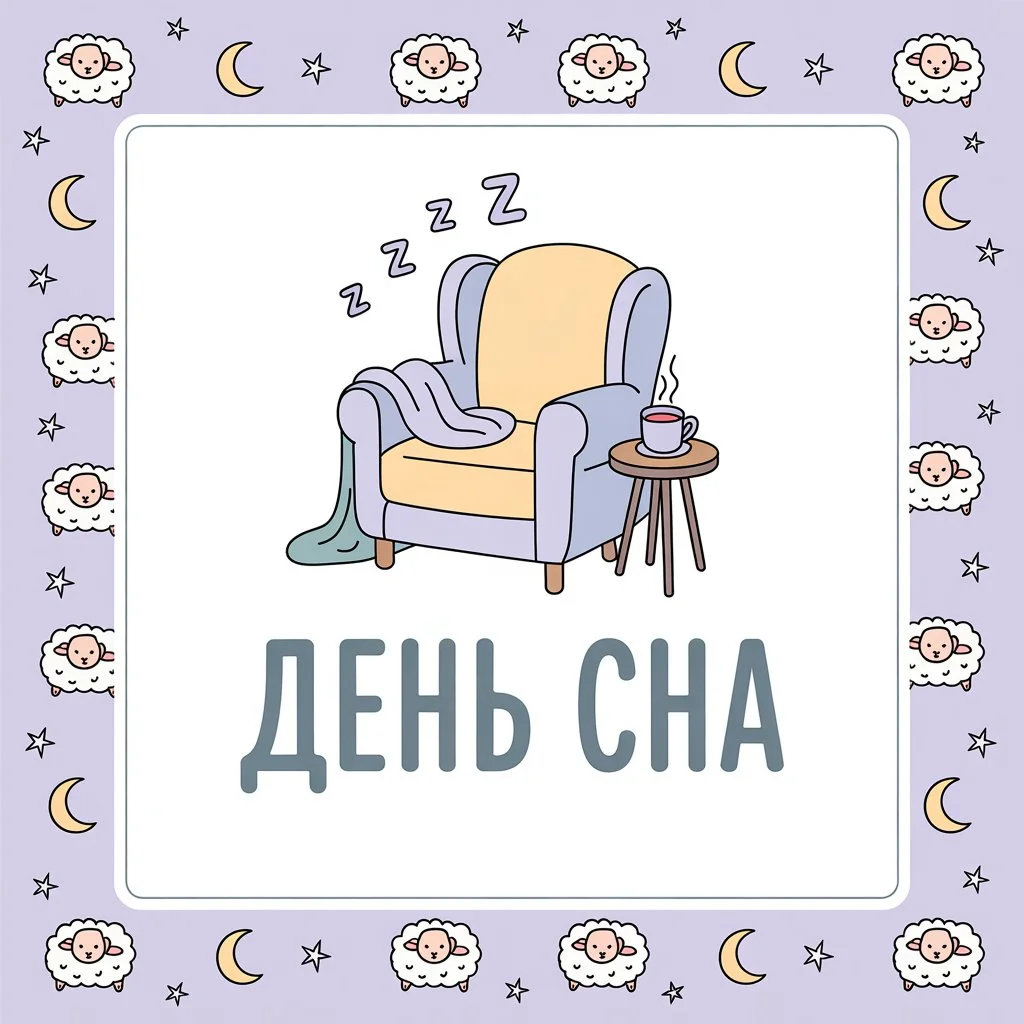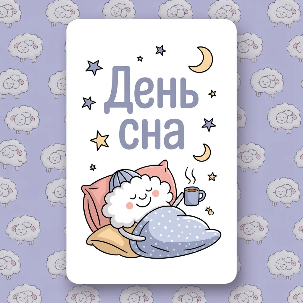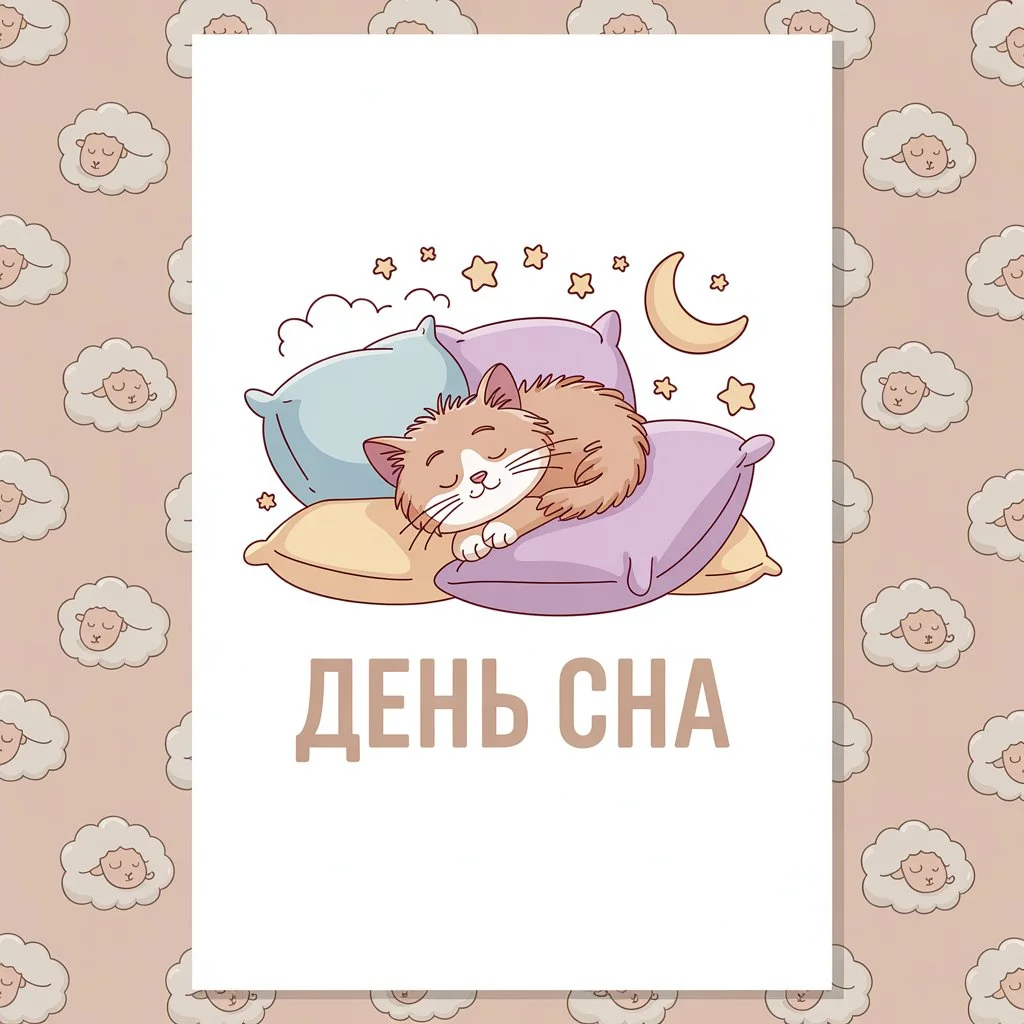 День сна — это праздник, который напоминает: забота о себе начинается с отдыха. Пусть ваша открытка станет тёплым жестом в сторону спокойствия, уюта и настоящего восстановления.